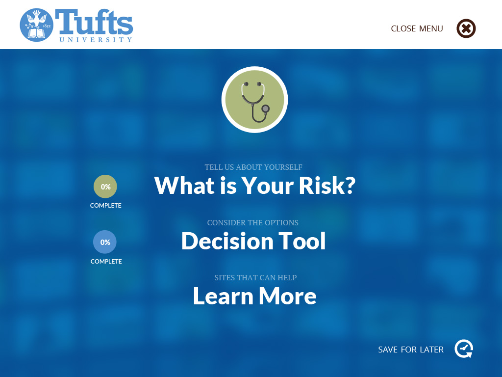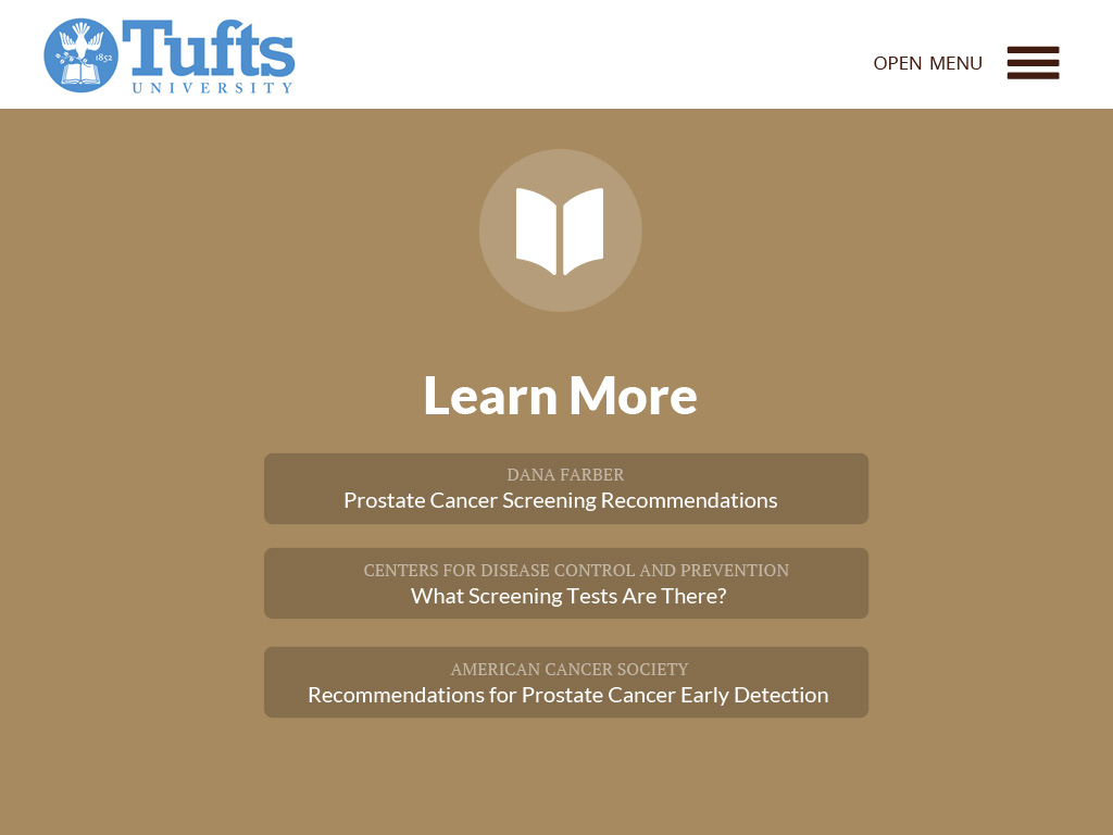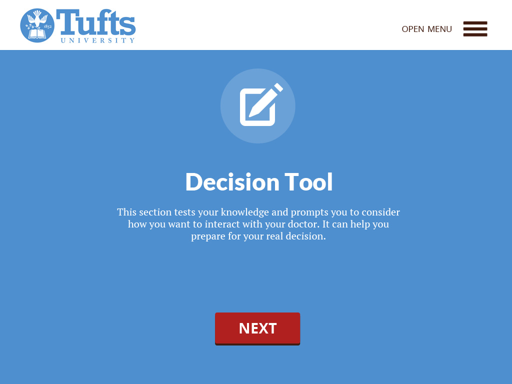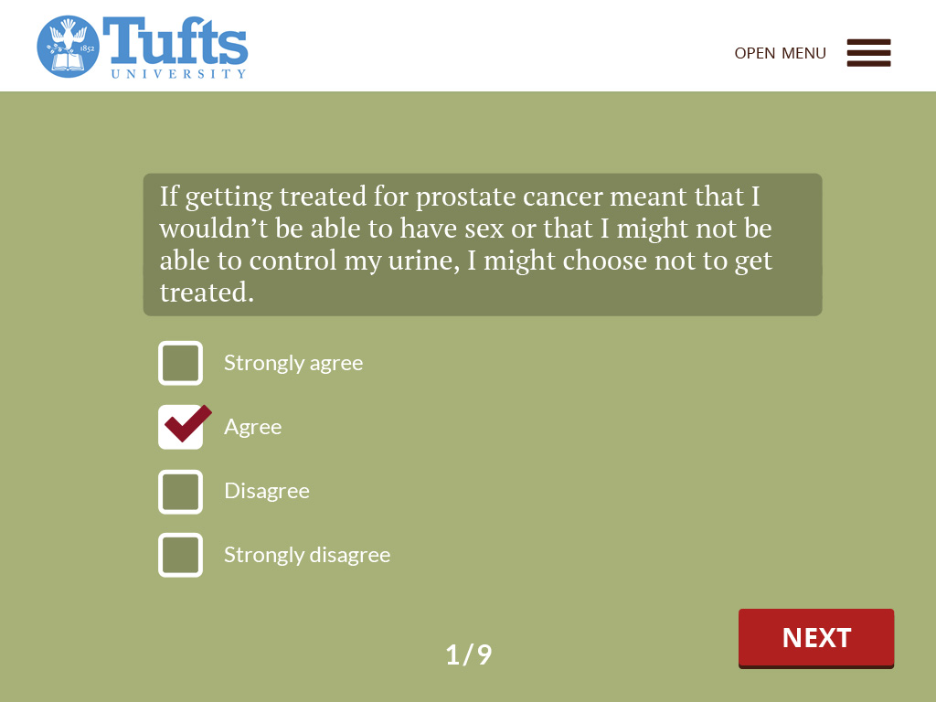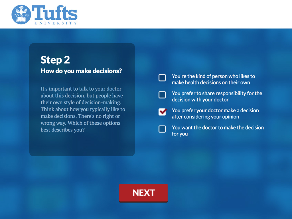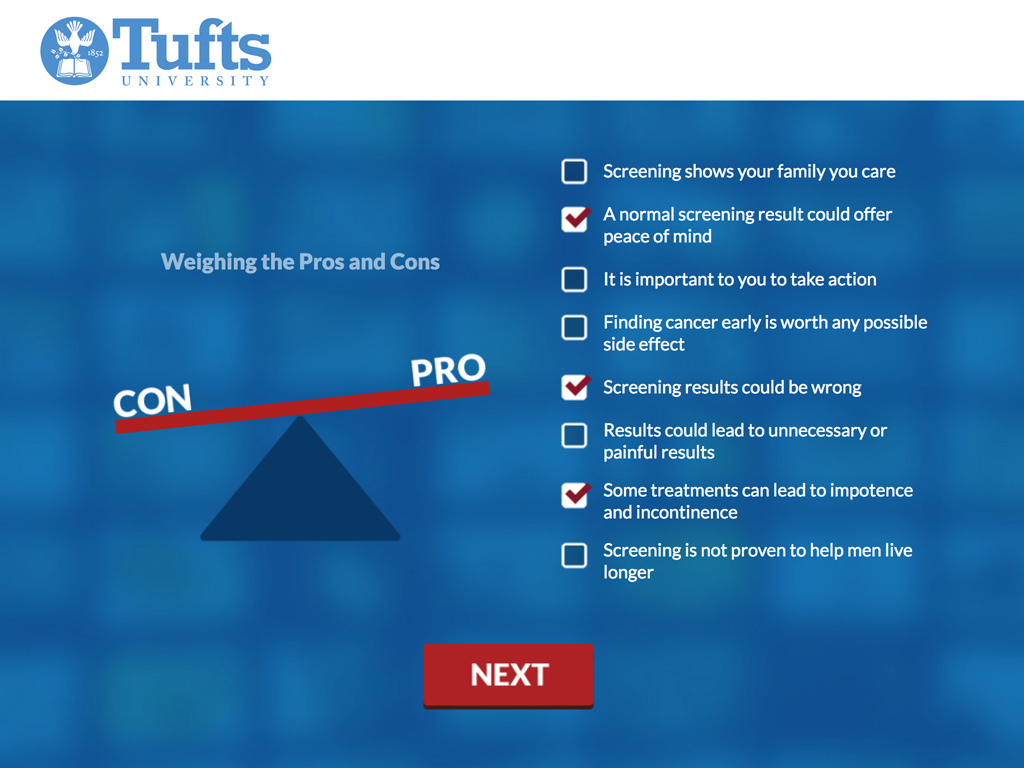 Prostrate cancer is a complicated problem. There is contradictory evidence whether pre-screening for the disease is helpful, so the patient’s decision comes down to knowledge and temperament. Tufts and Dana Farber worked on a questionnaire to assess a person’s inclination for pre-screening.